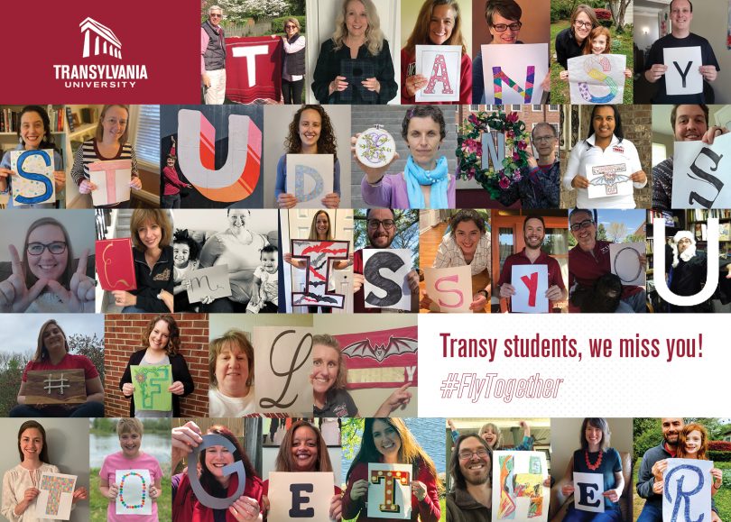 What they came up with was a photo collage message shared on the university’s social media accounts during what would traditionally have been Senior Week at the end of the 2019-20 academic year. The collage features members of the staff and faculty holding up letters that spell out a simple message: Transy students, we miss you! #FlyTogether.