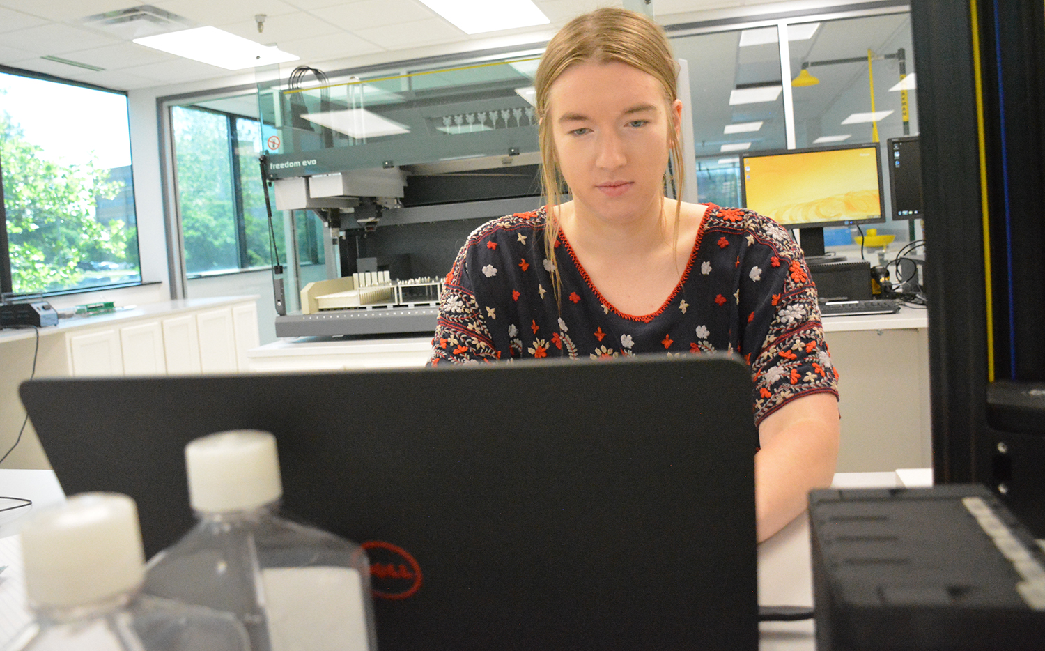 By the Monday after finals, she had a full-time job, dividing her time between writing content for blogs and reports and working as a tech in the new lab.